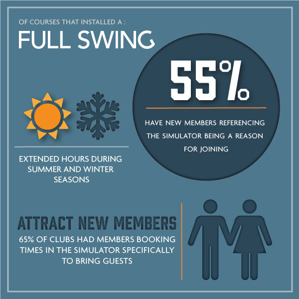 Courses that have installed a Full Swing Simulator in their clubhouse have seen players new to the game embracing a way to learn without worrying about slowing down groups on the course or chasing down duffed shots.